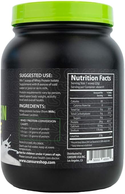Amazon Com Cansure 100 Whey Protein Isolate Drink Shake Powder Unflavored 2 Pounds Health Personal Care